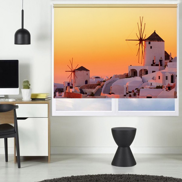 Ρόλερ Ψηφιακής Εκτύπωσης Μερικής Συσκότισης GI0009 Ελληνικά Νησιά-Ανεμόμυλοι και ηλιοβασίλεμα